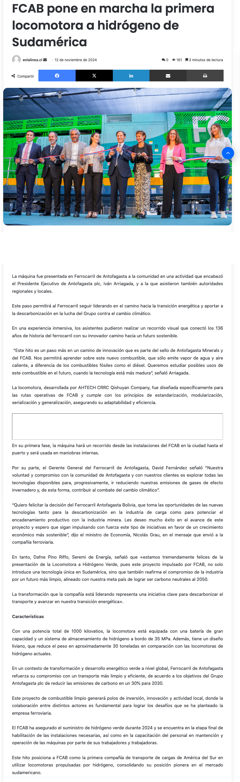 FCAB inaugura en Antofagasta la primera locomotora a hidrógeno verde de Sudamérica - (antofagastaaldia.cl)
