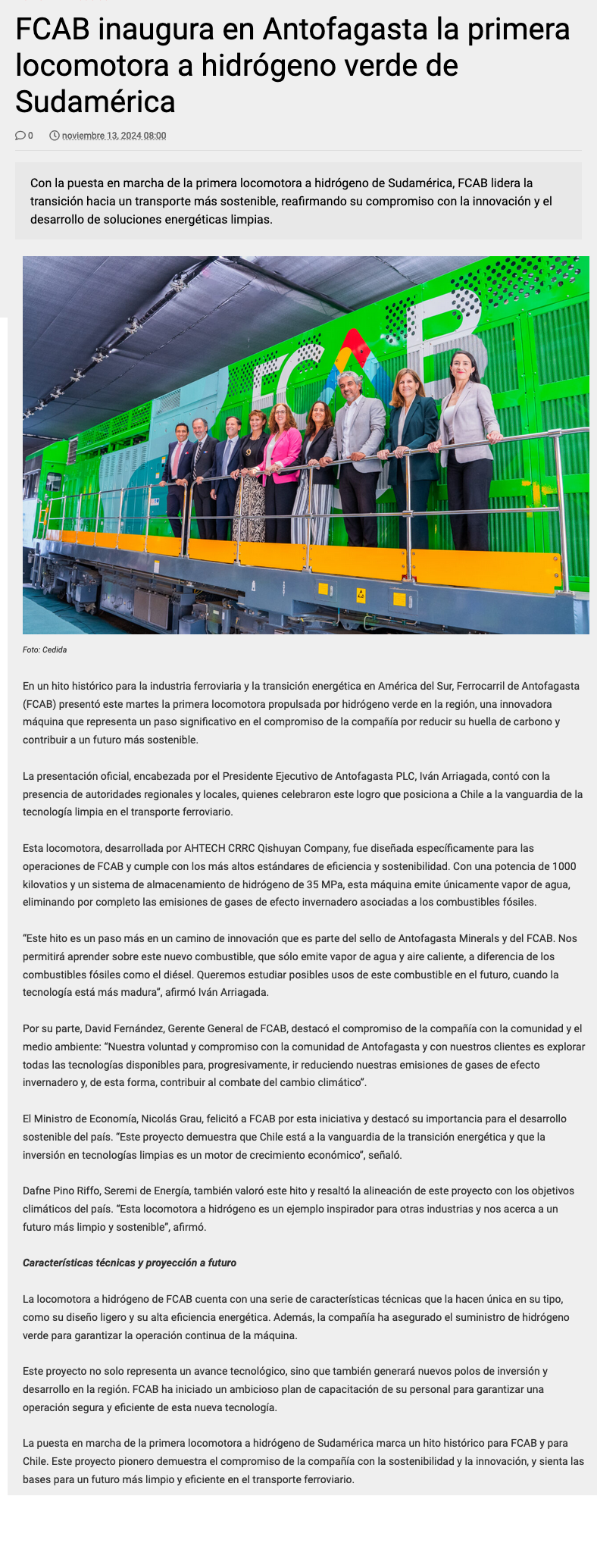 Antofagasta marca un hito histórico en Latinoamérica con la primera locomotora a hidrógeno verde - (diarioantofagasta)