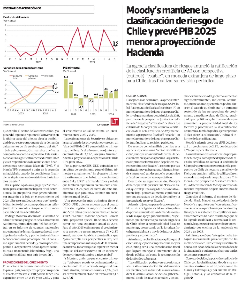 PIB crece más de 2% en el tercer trimestre, pero se instala inquietud en el mercado por consumo e inversión - (Diario Financiero)