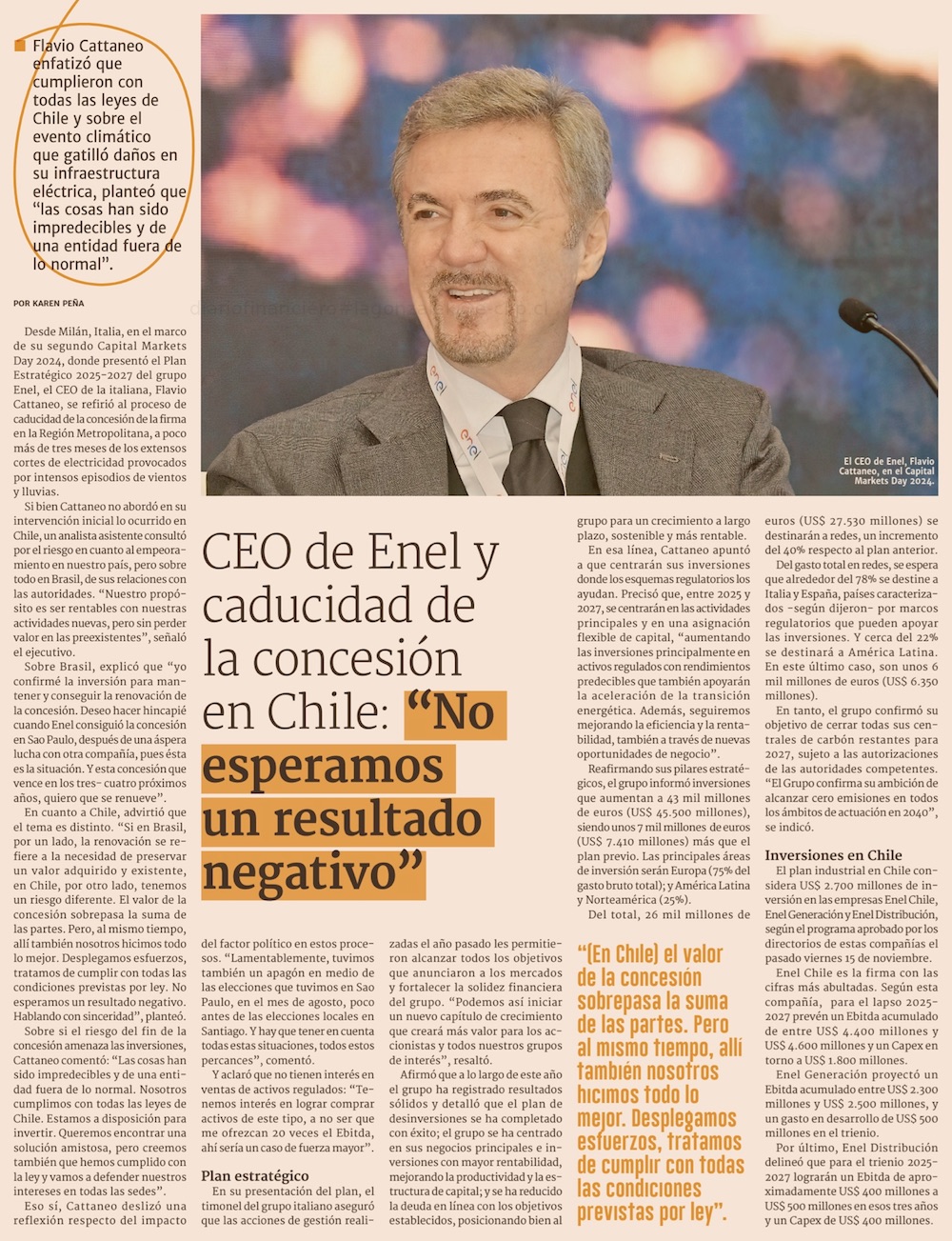 El desafiante mensaje del CEO Mundial de Enel sobre Chile: “hemos cumplido con la ley y vamos a defender nuestros intereses en todas las sedes” - (El Mercurio de Santiago)