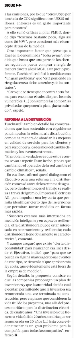 CEO de Enel Chile: “En Florida (EE. UU.) se han quedado dos semanas sin luz, nadie se ha quejado” - (El Mercurio de Santiago)