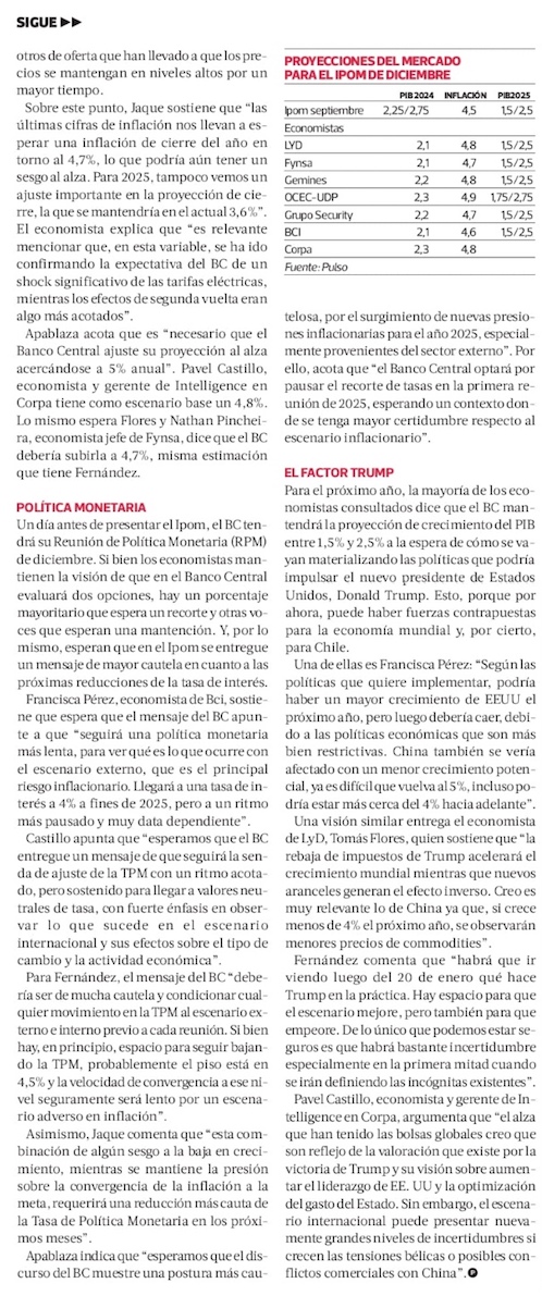 Tras IPC de 0,2% en noviembre, mercado proyecta que inflación 2024 cerrará sobre 4,5% - (Pulso)