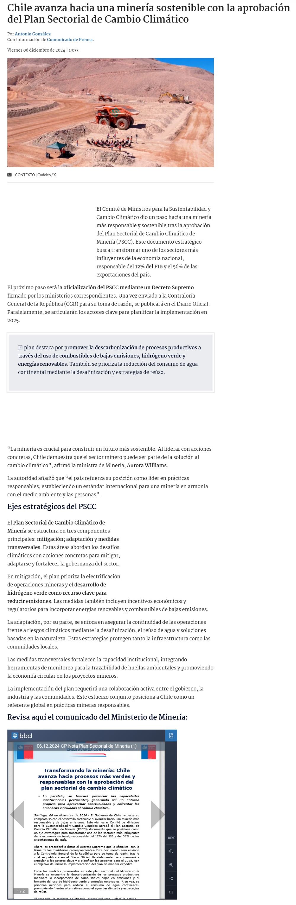Chile da un paso decisivo hacia una minería sostenible con la aprobación del Plan Sectorial de Cambio Climático de Minería - (diarioangamos)