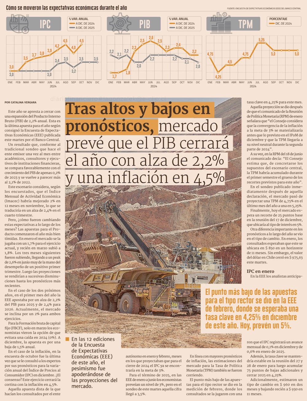 Economistas bajan a 2% la proyección de crecimiento del PIB para 2025 y 2026 - (El Mercurio de Santiago)