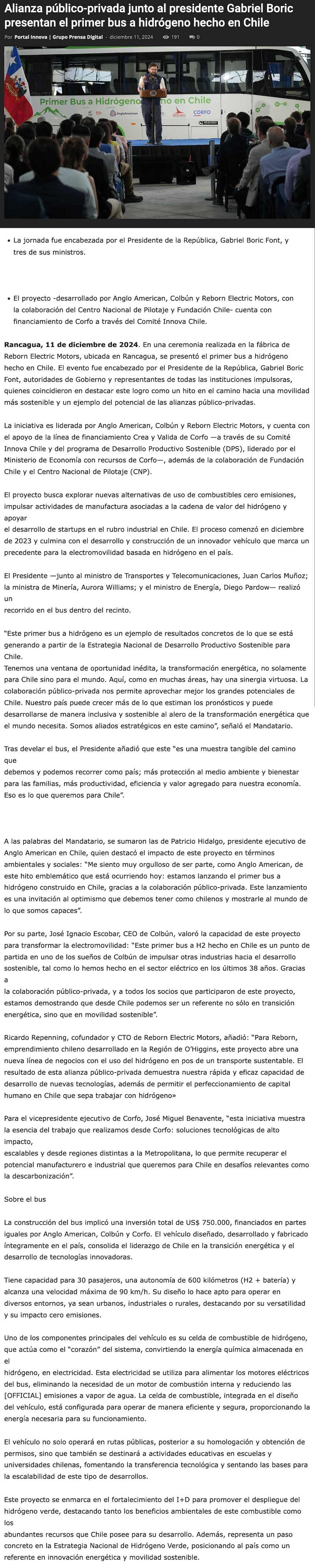 Alianza público-privada presenta el primer bus a hidrógeno hecho en Chile - (infogate.cl)