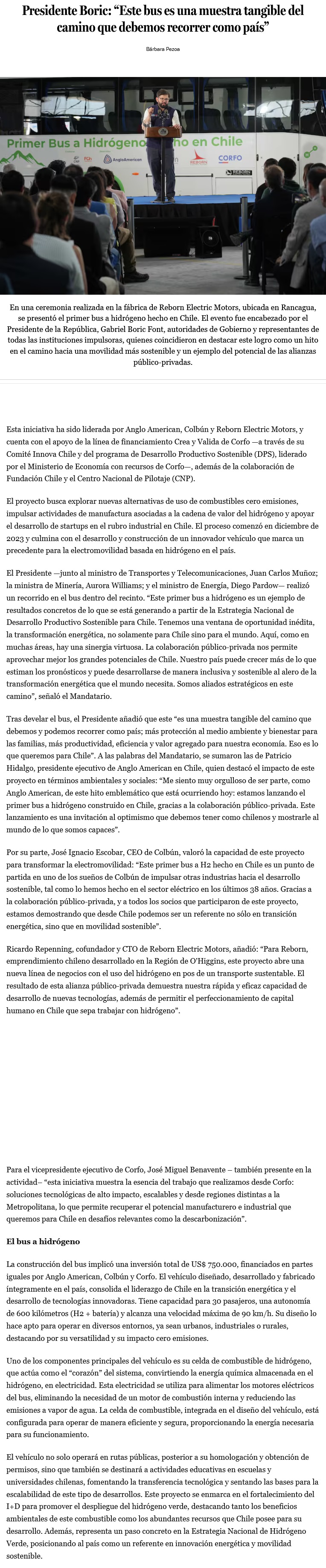 Boric celebra el primer bus a hidrógeno verde fabricado en Chile: se invirtieron más de $800 millones - (biobiochile online)