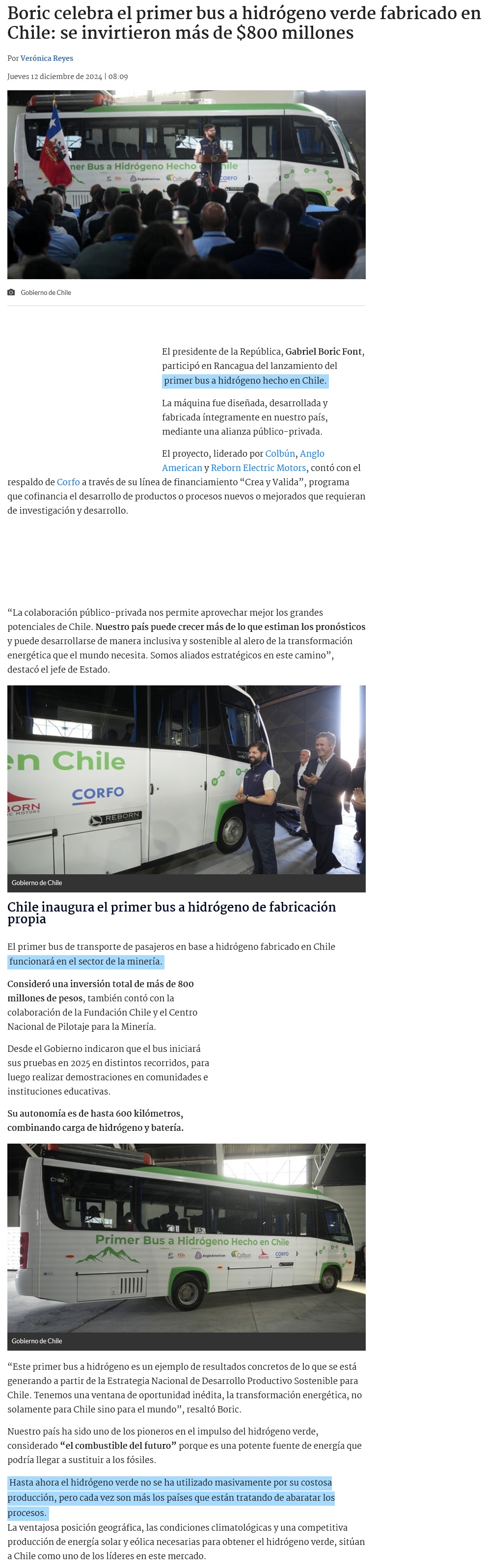 Presidente Boric: “Este bus es una muestra tangible del camino que debemos recorrer como país” - (La Tercera Online)