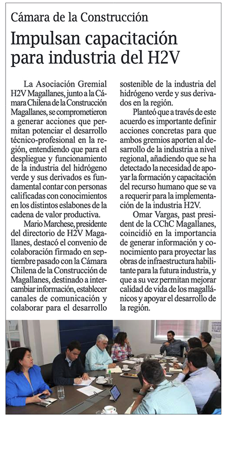H2V Magallanes y CChC impulsan capacitación para la industria del hidrógeno verde y sus derivados - (h2news.cl)