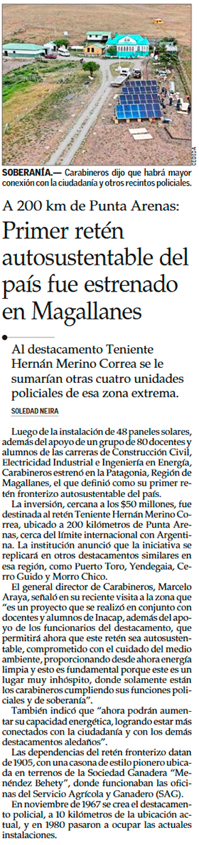 En Magallanes inauguraron el primer retén de Carabineros autosistentable - (El Pingüino)