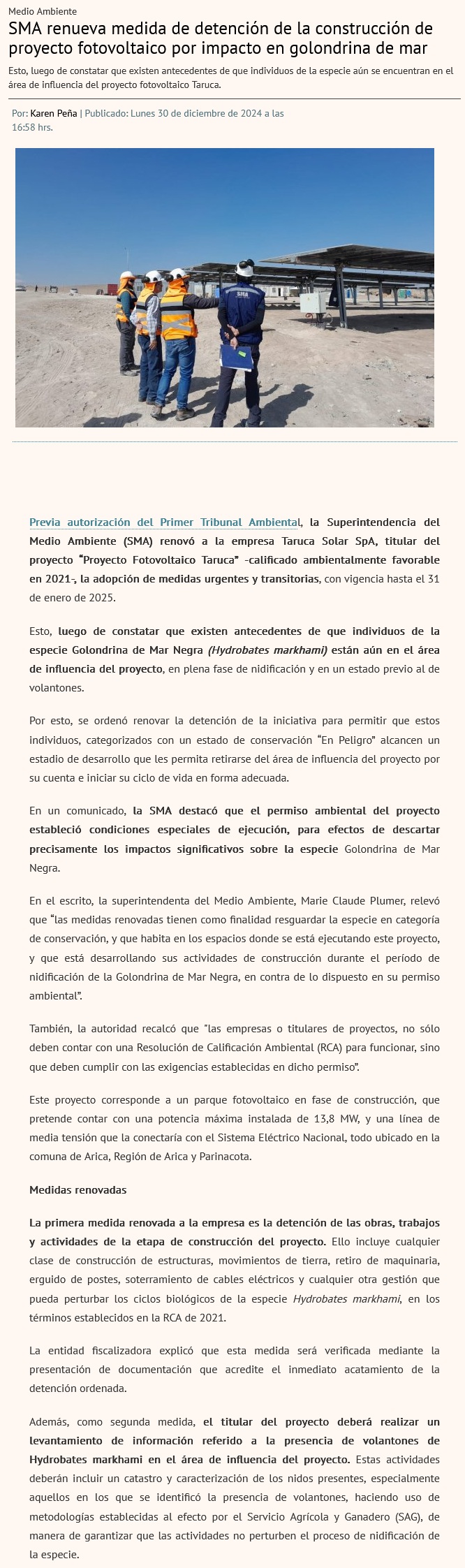 SMA renueva la paralización de proyecto Tarucaco - (Pulso)