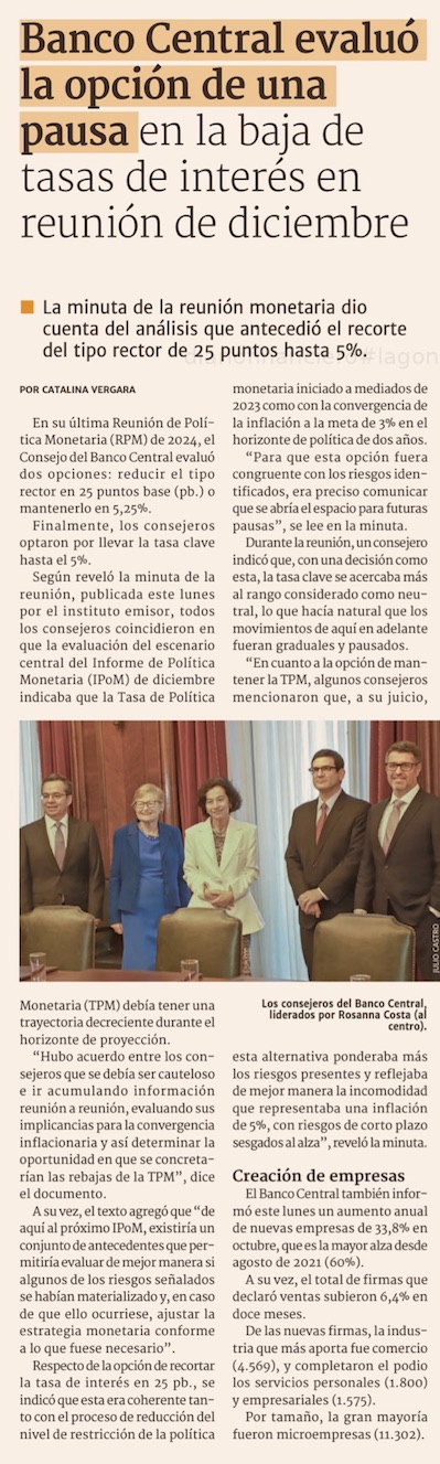 Consejeros evaluaron mantener o bajar la tasa - (El Mercurio de Santiago)