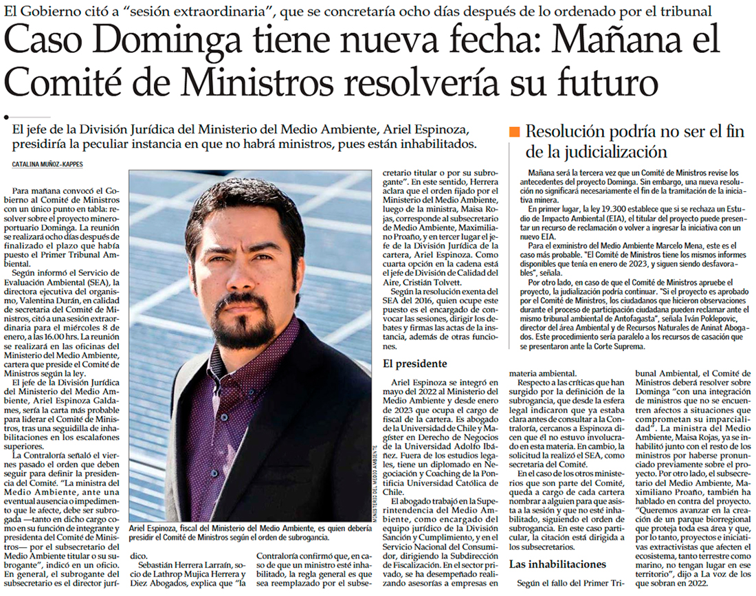 Citan al Comité de Ministros -sin ministros- para resolver el futuro de Dominga este miércoles - (Pulso)