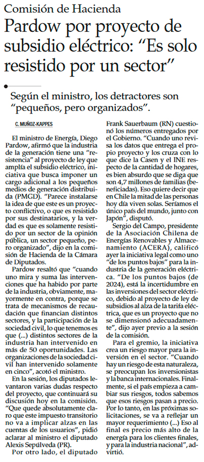 Pardow enfrenta tensa sesión con diputados de la comisión de Hacienda por proyecto de subsidio eléctrico - (Diario Financiero)