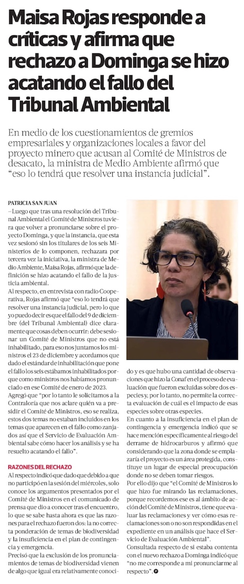 Dominga: los escenarios judiciales que se abren tras el nuevo rechazo del Comité de Ministros - (Pulso)