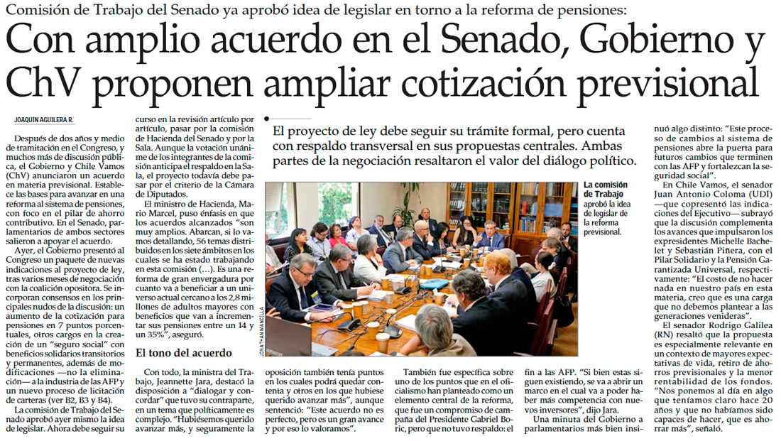 Las claves del nuevo diseño que propone el acuerdo en pensiones - (El Mercurio de Santiago)