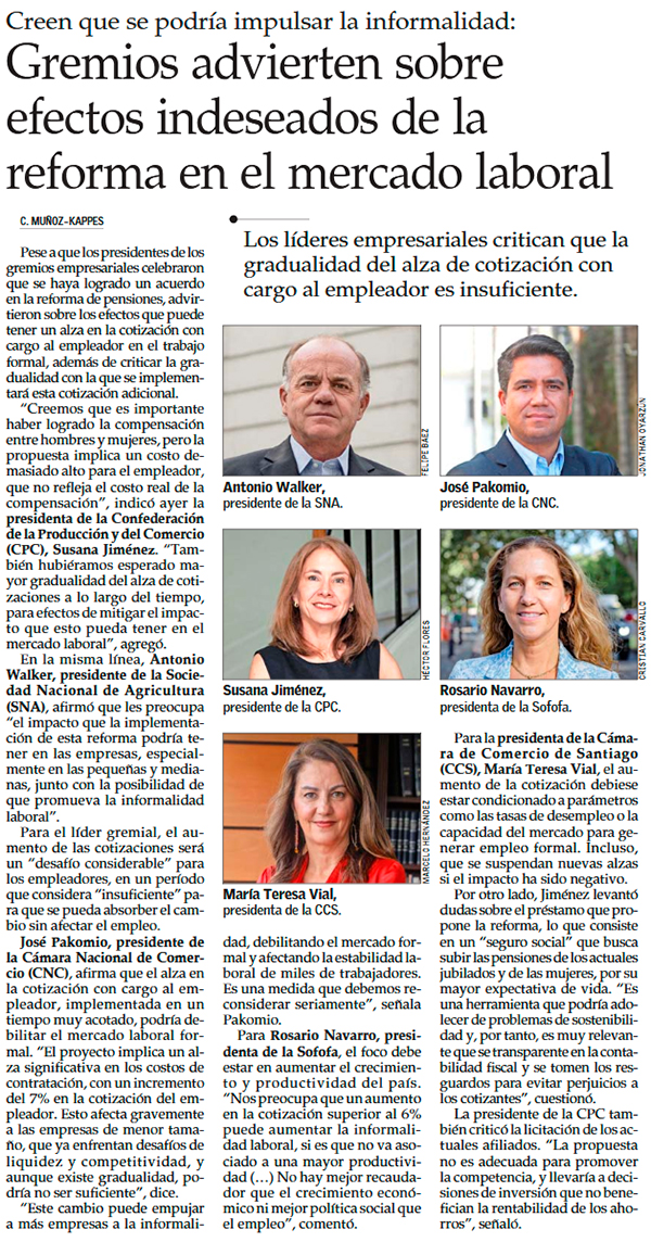 Economistas y gremios critican impacto de mayor cotización en el empleo y desarrollo de negocios - (Diario Financiero)