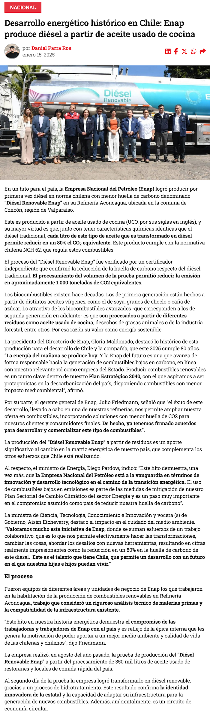 Enap estrena diésel creado a partir de aceite de cocina - (El Mercurio de Valparaíso)