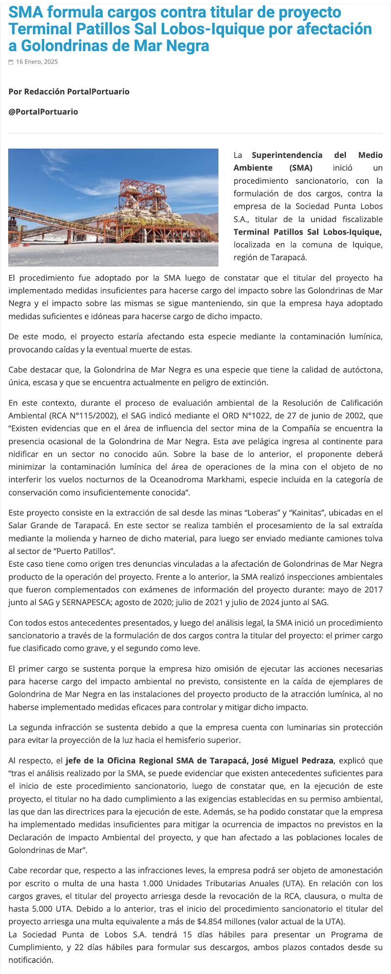 SMA formula cargos contra titular de proyecto Terminal Patillos Sal Lobos-Iquique - (reporteminero)