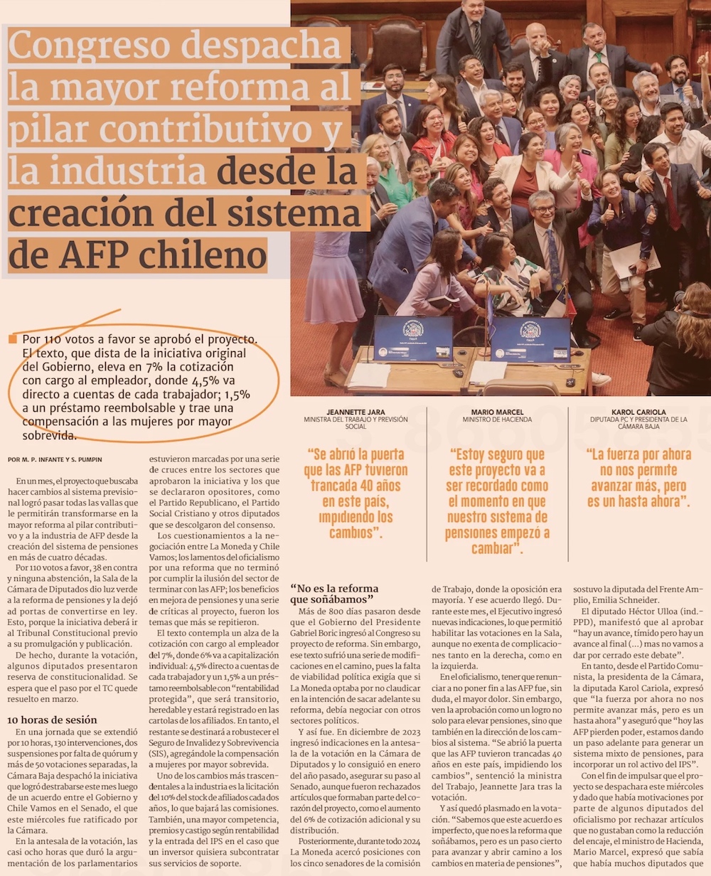 Congreso aprueba la reforma más profunda al sistema de pensiones desde el inicio de la capitalización individual - (El Mercurio de Santiago)