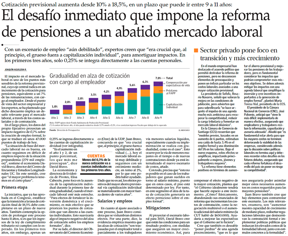 Gremios pyme difieren sobre efectos de reforma previsional - (El Mercurio de Santiago)