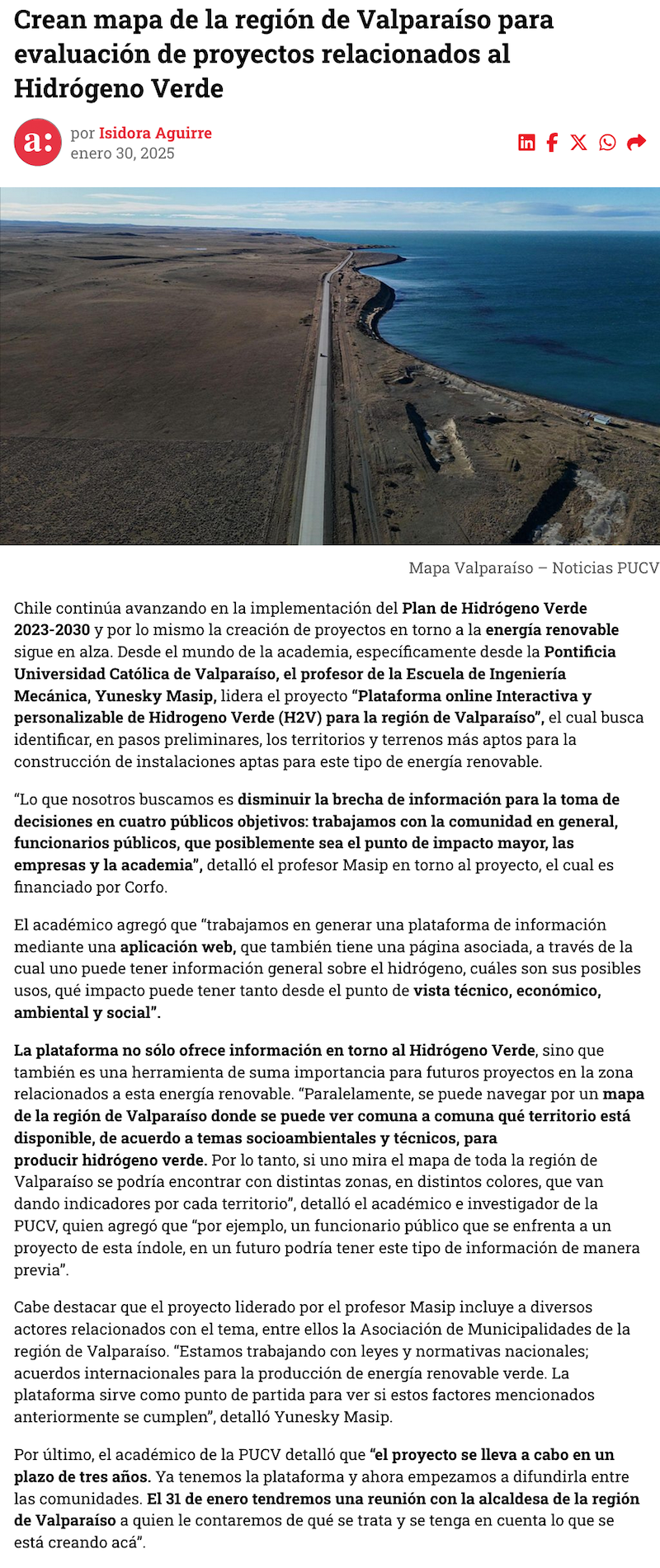 Crean mapa de la región de Valparaíso para evaluación de proyectos relacionados al Hidrógeno Verde - (Adprensa.cl)