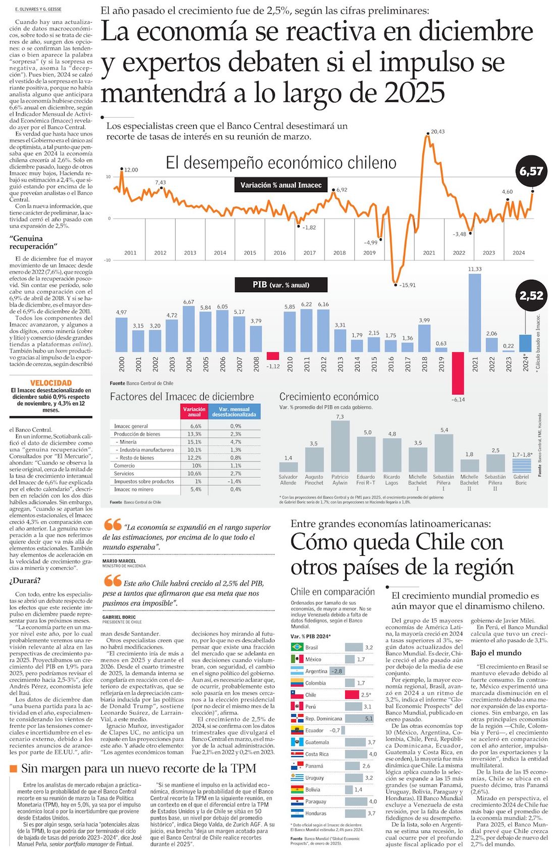 Diciembre sorprende con fuerte alza y lleva a la economía a crecer más de lo esperado en 2024: un 2,5% - (Diario Financiero)
