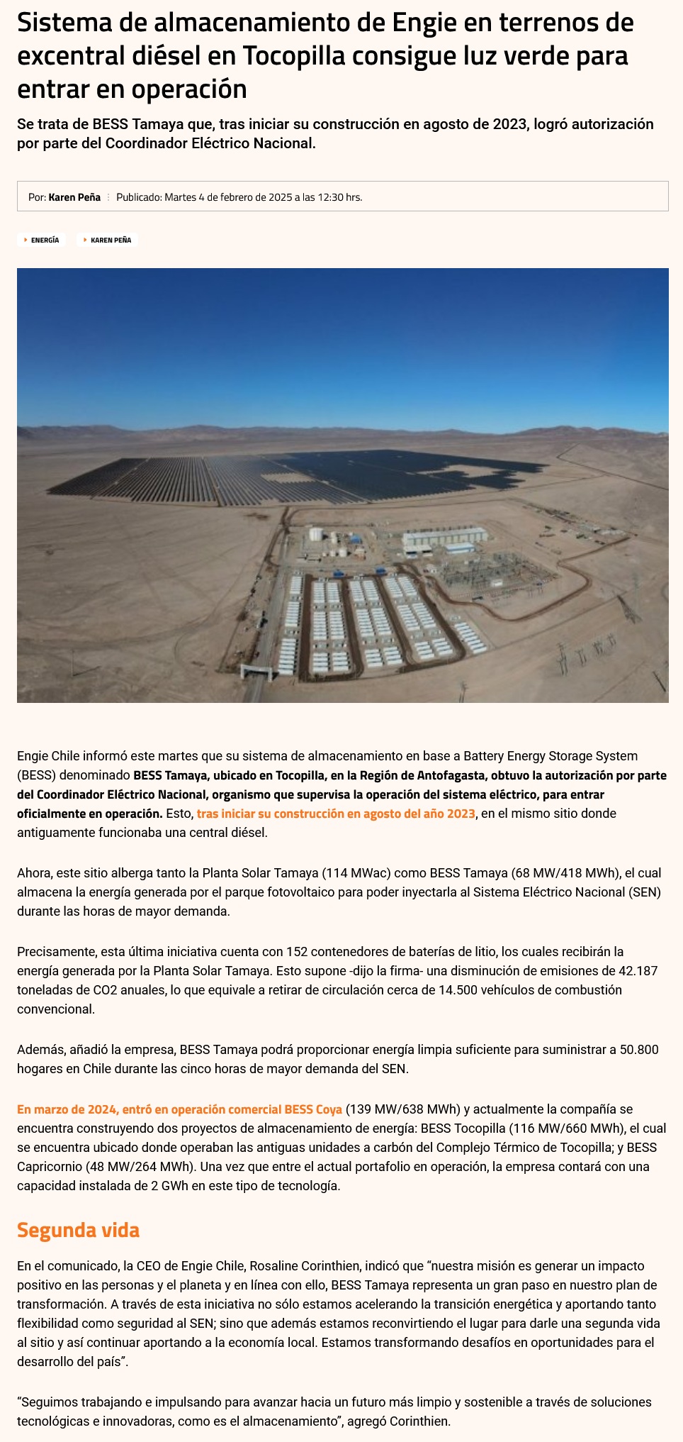 De diésel a energía renovable: Así funciona nuevo sistema de baterías en Tocopilla - (revistaei.cl)