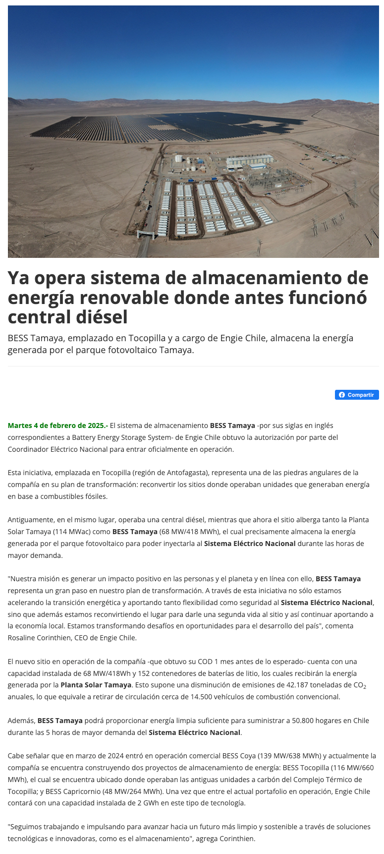 De diésel a energía renovable: Así funciona nuevo sistema de baterías en Tocopilla - (revistaei.cl)