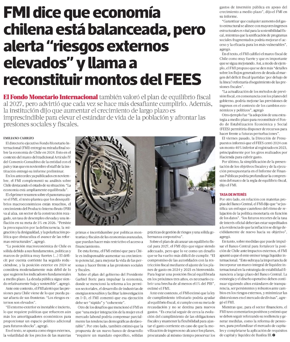 FMI plantea seguir de cerca evolución del cumplimiento tributario en medio de riesgos externos y alta incertidumbre - (Diario Financiero)