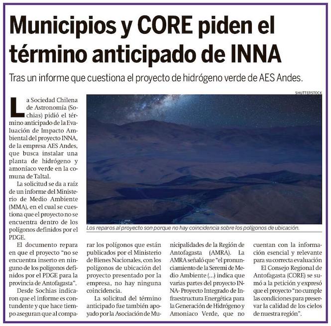 Municipios respaldan idea de dar término anticipado al proyecto INNA en Taltal - (timeline)