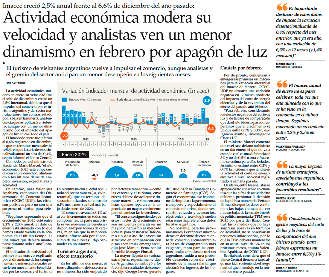La economía chilena comienza en buen pie el año, pero Hacienda y el mercado ven que el apagón golpeará la cifra de febrero - (Diario Financiero)