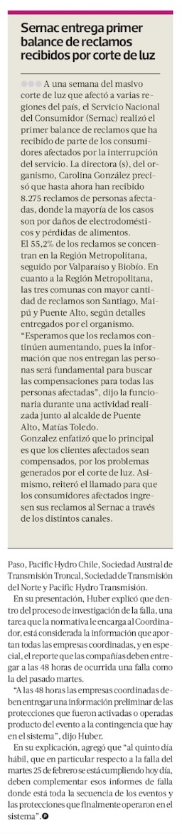 ISA reportó problemas previo al apagón - (El Mercurio de Santiago)