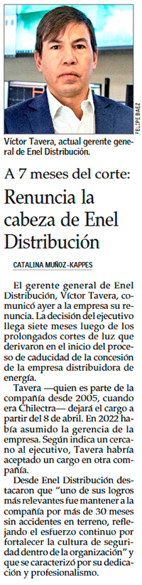 Renuncia Víctor Tavera, gerente general de Enel Distribución que lideró crisis por cortes de luz de 2024 - (Diario Financiero)