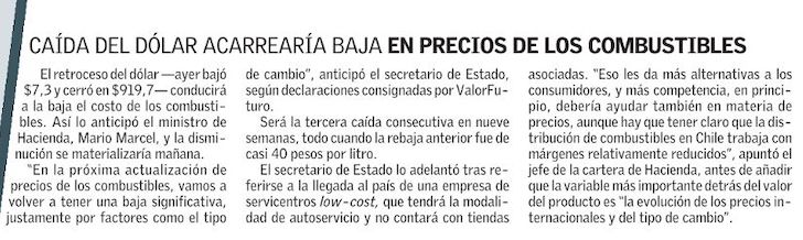 Alza del cobre hace retroceder el dólar a $920 - (Pulso)