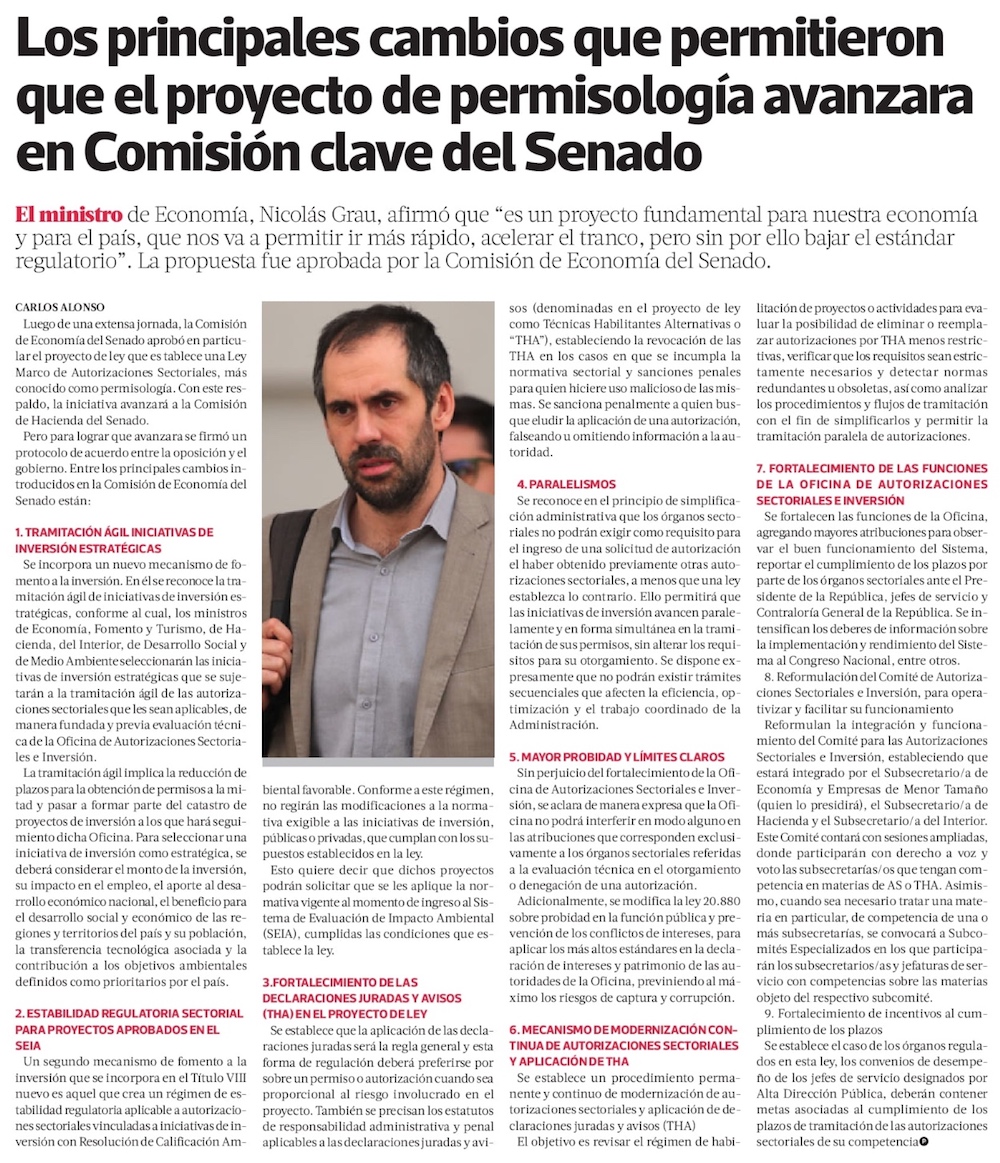 Los cambios con que avanza en el Senado el proyecto de permisos sectoriales para reducir tiempos de tramitación - (Diario Financiero)