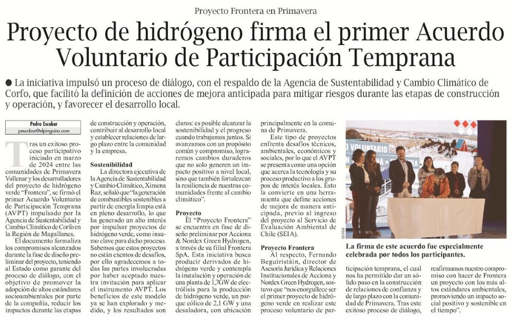 Proyecto de hidrógeno verde “Frontera” adelantará su proceso de participación temprana en Primavera - (laprensaaustral.cl)