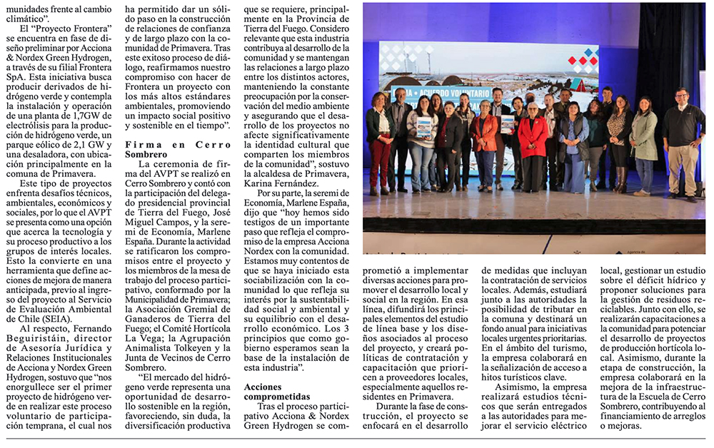 Proyecto de hidrógeno verde “Frontera” adelantará su proceso de participación temprana en Primavera - (laprensaaustral.cl)