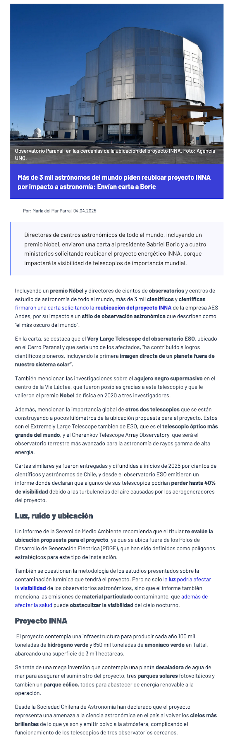 Más de 3 mil astrónomos envían carta a Boric por proyecto industrial: ¿Cuáles son las razones? - (meganoticias.cl)