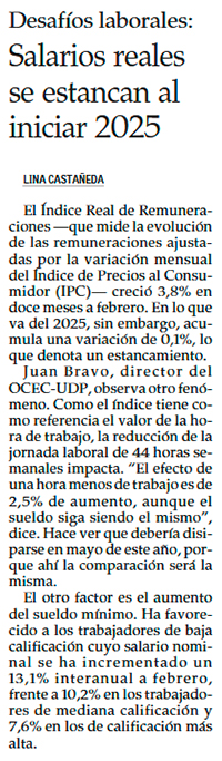Los salarios de los trabajadores chilenos se aceleraron en febrero - (Diario Financiero)