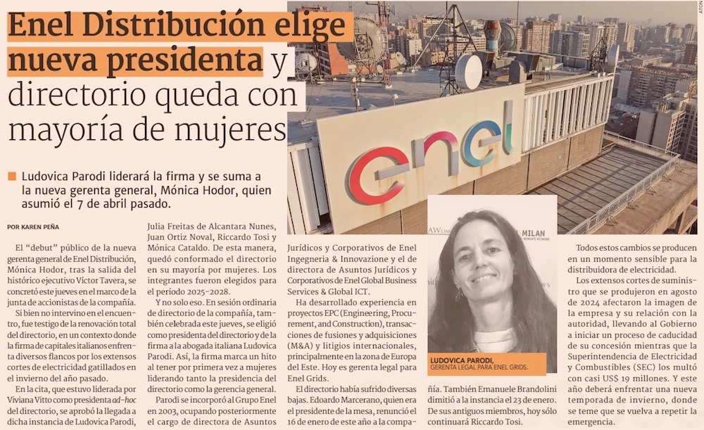 Enel Distribución renueva su mesa: mayoría de mujeres y lo preside abogada de amplia trayectoria en grupo italiano - (Pulso)