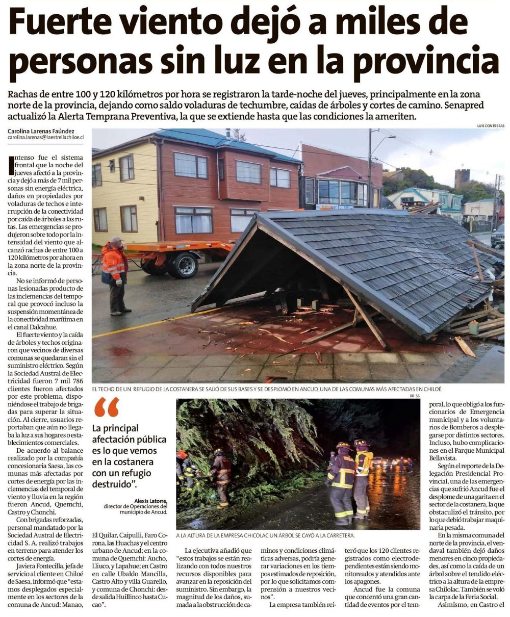 En Osorno y Chiloé hubo cortes de luz y daños en casas - (El Llanquihue)