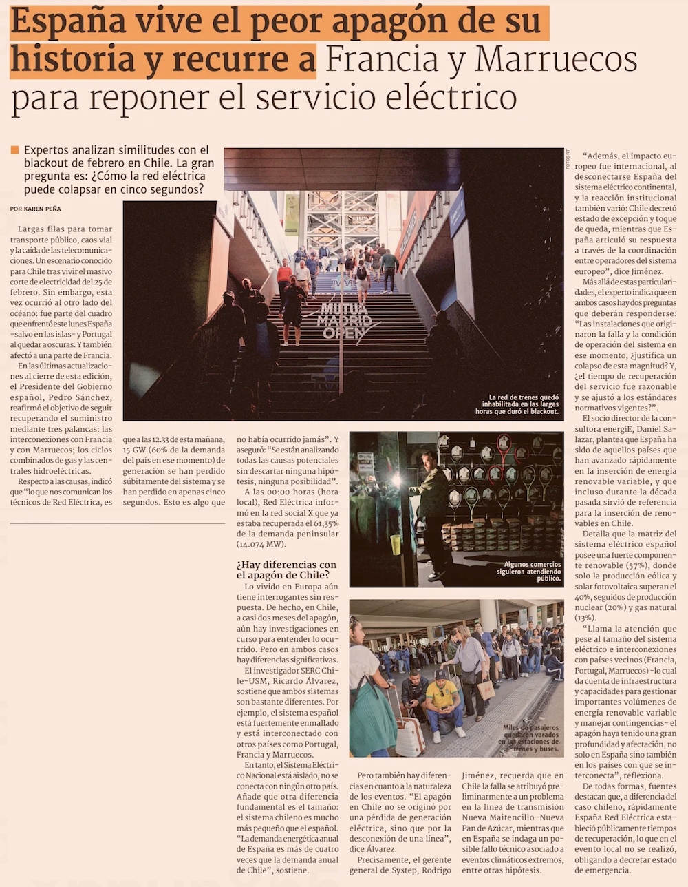 Una “caída a cero del sistema” produjo el inédito apagón en España y Portugal - (El Mercurio de Santiago)