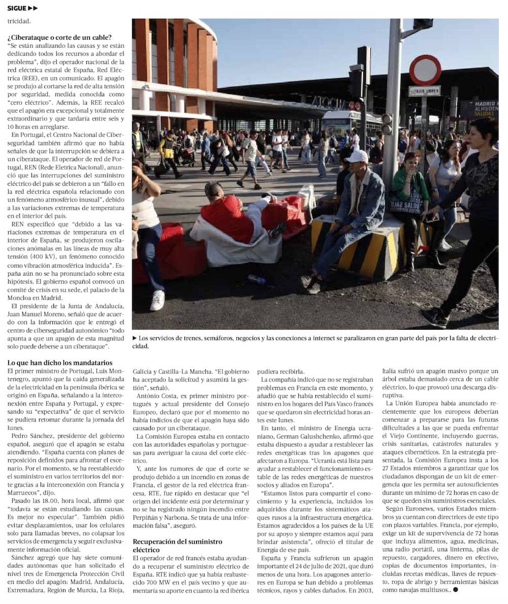 Una “caída a cero del sistema” produjo el inédito apagón en España y Portugal - (El Mercurio de Santiago)
