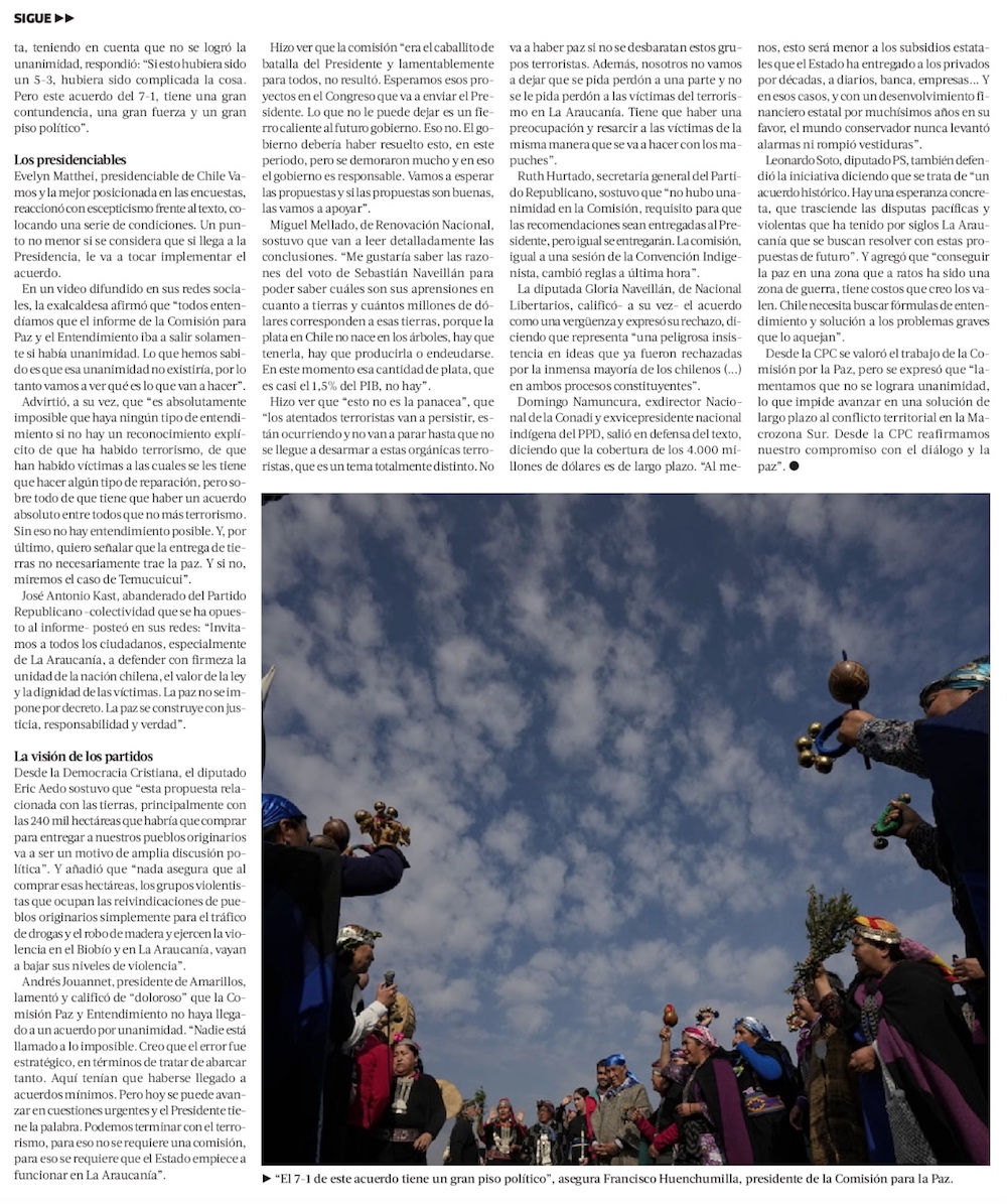 Preocupación de gremios ante falta de unanimidad en informe final de Comisión para la Paz - (El Mercurio de Santiago)