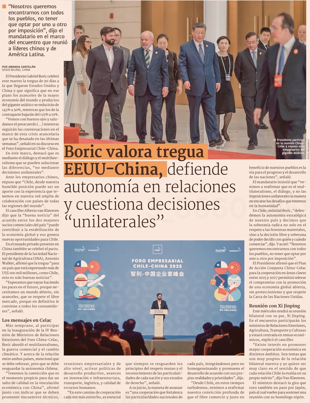 Boric alude a Trump en China: “Defendemos la decisión libre y soberana de decidir con quién y cuándo comerciar” - (La Tercera)