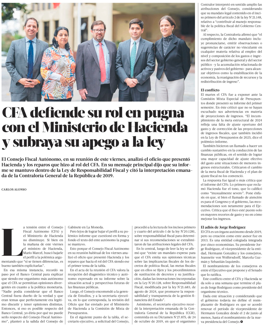 CFA reivindica su carácter técnico y defiende sus atribuciones ante críticas de Hacienda - (El Mercurio de Santiago)