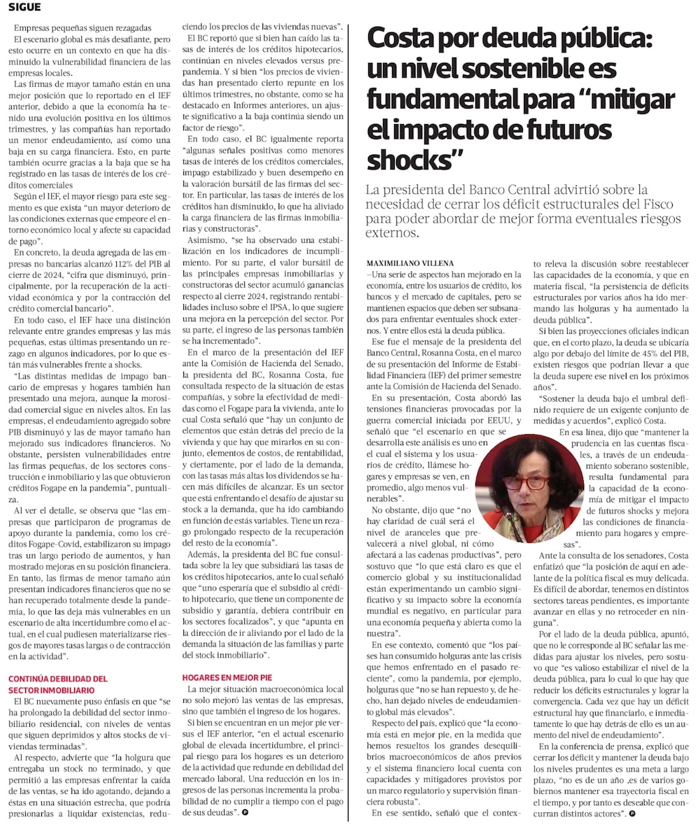 IEF remarca que prudencia en cuentas fiscales ayuda a mitigar el impacto de futuros shocks - (El Mercurio de Santiago)