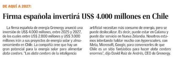 Grenergy: Chile tiene “posibilidades extraordinarias” en datacenters - (Diario Financiero)