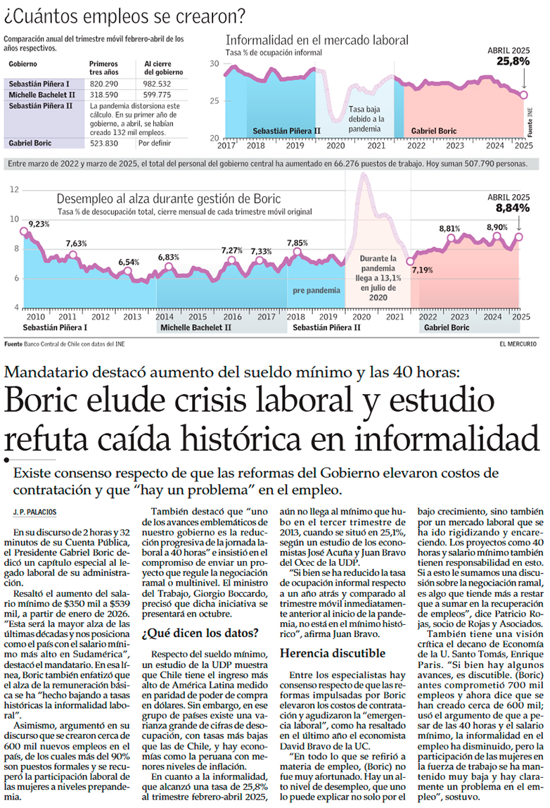 Gobierno anuncia proyecto para fomentar empleo de mujeres y jóvenes, y vuelve a prometer la negociación ramal - (La Tercera)