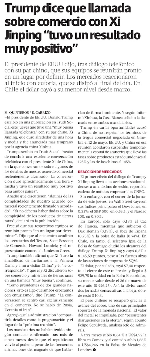 Trump y Xi acuerdan avanzar en negociaciones ante tensión comercial - (El Mercurio de Santiago)
